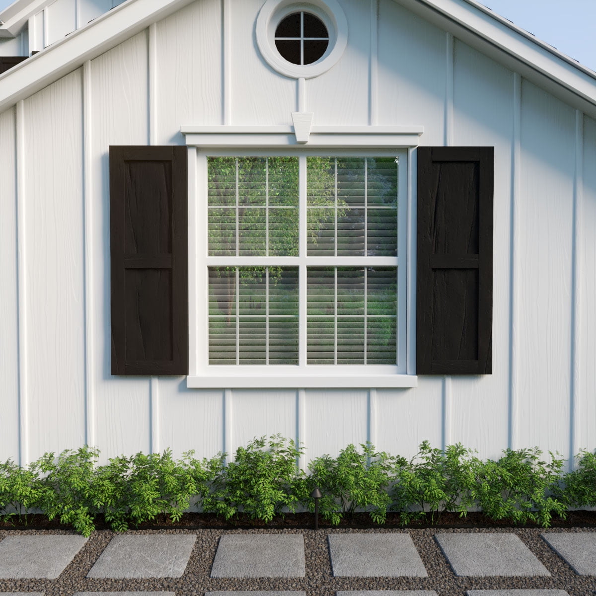 Ekena Millwork 15 W X 74 H Rustic Two Equal Panel Flat Panel Riverwood Faux Wood Shutters Per Pair Primed Tan Walmart Com